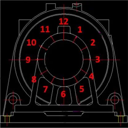 • ए) समस्या: डबल-समर्थित मशीन बेस असेंबली की असर वाली सीट के बारीक-मशीनीकृत आंतरिक छेद की समाक्षीयता अस्थिर है। असेंबली के बाद, यह पूरे मशीन बेस के असर कक्ष के सहिष्णुता से अधिक होने का कारण बनेगा, जो ड्राइंग आवश्यकताओं को पूरा नहीं करता है।