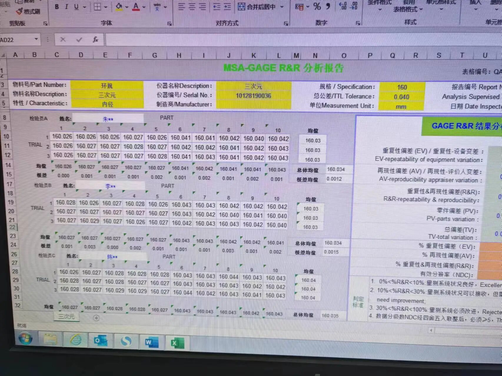 सबसे पहले, उपकरण ऑपरेटर यह सुनिश्चित करने के लिए कि उपकरण हमेशा सामान्य स्थिति में है, उपकरण शुरू करते समय आइटम के अनुसार प्रदर्शन जांच करते हैं। साथ ही, उच्च परिशुद्धता परीक्षण उपकरणों के लिए, परीक्षण डेटा की सटीकता और विश्वसनीयता सुनिश्चित करने के लिए उपकरण के ऑपरेटिंग पर्यावरण आवश्यकताओं के अनुसार परीक्षण वातावरण के तापमान और आर्द्रता की सख्ती से निगरानी की जाती है। कंपनी प्रतिभा विकास को बहुत महत्व देती है और यह सुनिश्चित करने के लिए एक व्यापक और प्रभावी रोलिंग प्रशिक्षण योजना तैयार की है कि उपकरण ऑपरेटर जल्दी से उपकरण संचालन कौशल में महारत हासिल कर सकें। 2023 में, मेट्रोलॉजी प्रयोगशाला ने परीक्षण उपकरणों के उपयोग और सावधानियों पर 6 विशेष प्रशिक्षण सत्र आयोजित किए, जिसमें कंपनी के लिए 35 बैकबोन उपकरण ऑपरेटरों को प्रशिक्षण दिया गया। महत्वपूर्ण उपकरणों के लिए, एक विस्तृत गेज आर एंड आर विश्लेषण योजना तैयार की गई है। 2023 में, GAUGE R&R विश्लेषण कई प्रमुख परीक्षण उपकरणों पर किया गया था, और वास्तविक विचलन उपकरण की स्वीकार्य विचलन आवश्यकताओं से काफी कम था।
