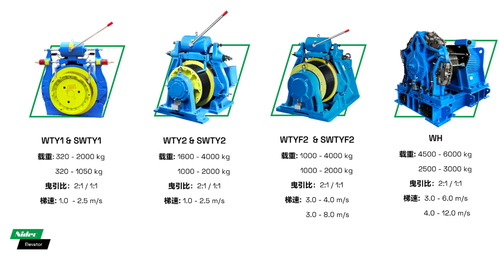 • 5500KG तक की अधिकतम भार क्षमता और 3m/s की अधिकतम एलिवेटर गति के साथ, विभिन्न कर्षण अनुपात योजनाएं 2500KG से 5500KG तक की लोड आवश्यकताओं को कवर करती हैं।