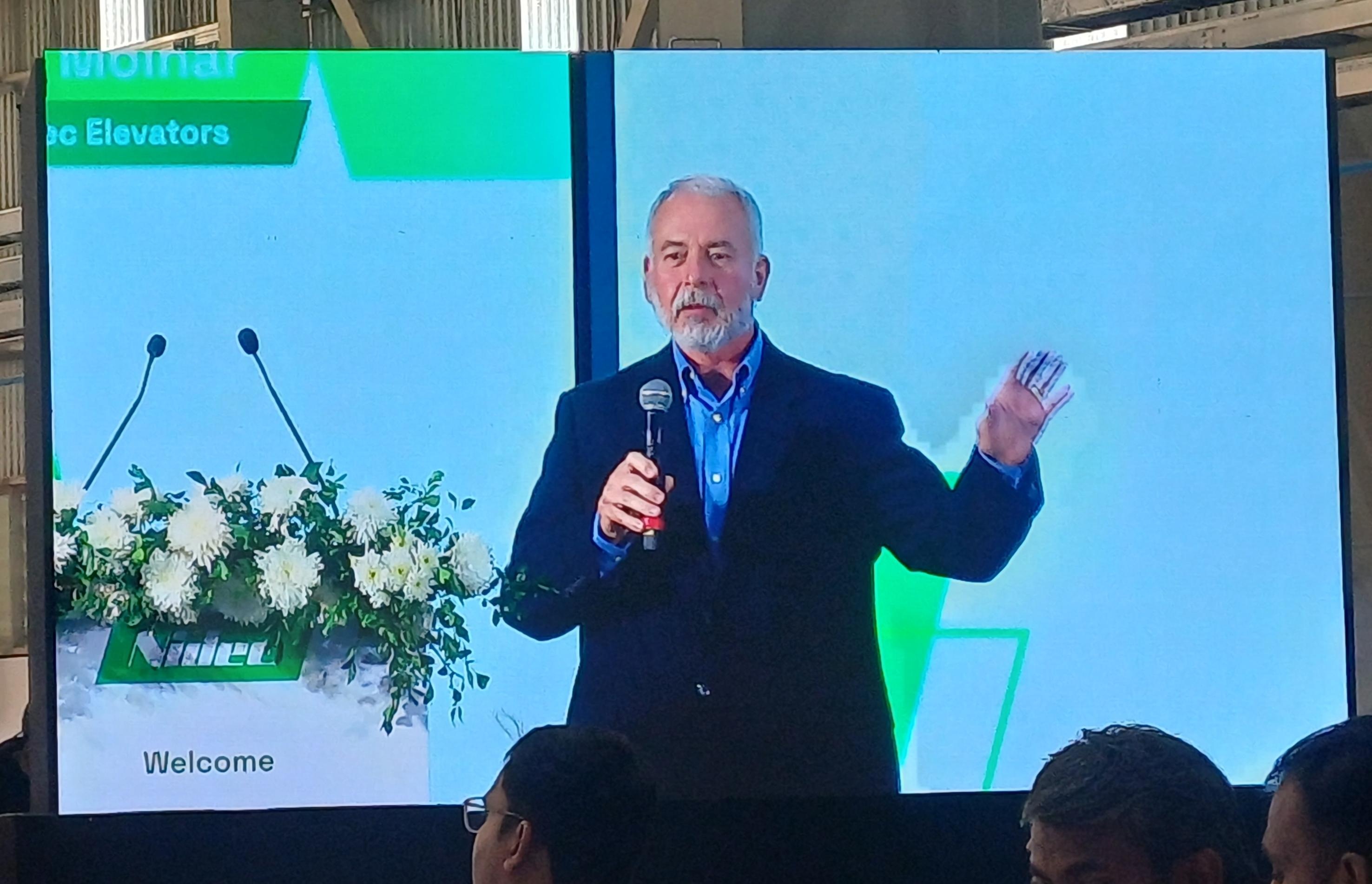 चित्र 8 एनआईडीईसी एलिवेटर के उपाध्यक्ष श्री डेविड मोल्नार, समारोह को संबोधित करते हुए